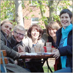 Karola Richter: "Bei unserem df on tour waren wir in der alten Baumwollspinnerei in Leipzig. Dieser alte Fabrikstandort ist gespickt von gr��eren und kleinen Galerien, Ateliers und Werkst�tten (http://www.spinnerei.de). Dabei waren Laura Cugat Schoch, Bettina G�ttke-Krogmann, Christina Salzwedel, Karola Richter und als Gast die Architektin und Mosaikk�nstlerin Juliane Vikoria Scholz.